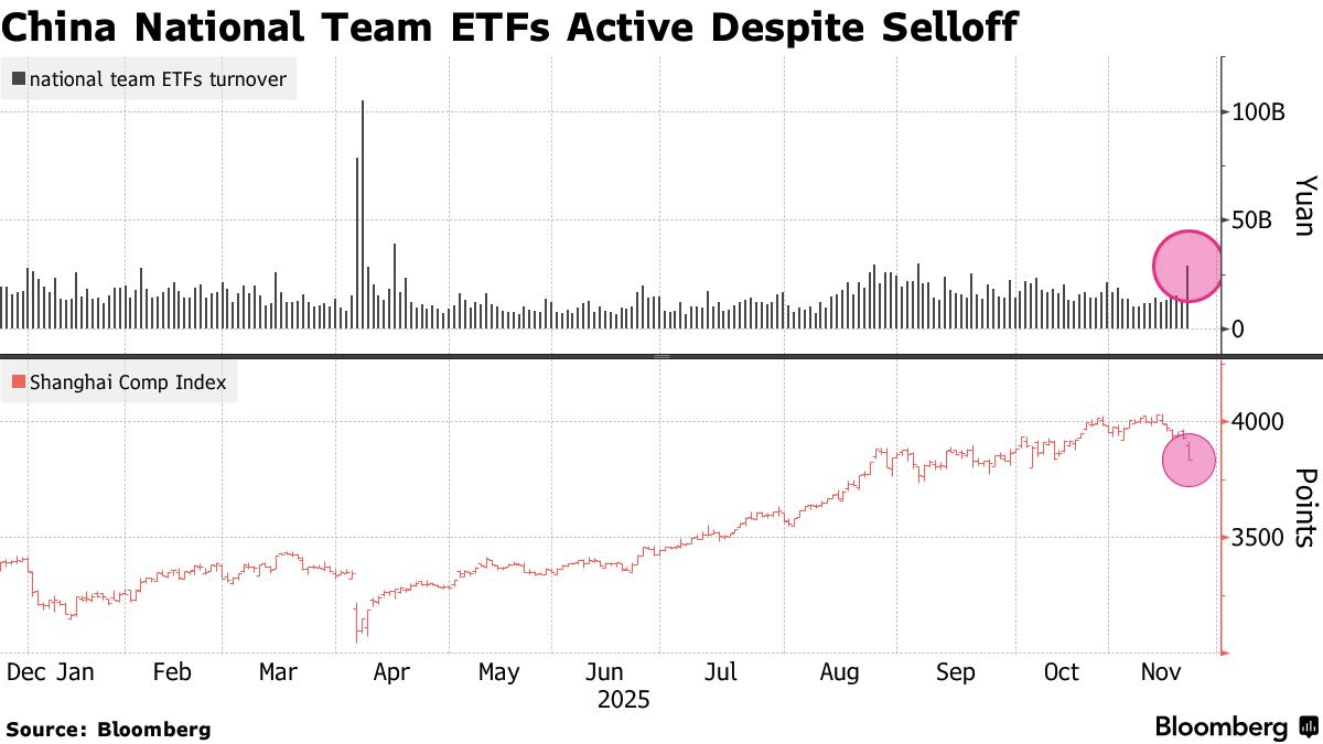 八只与国家队关联的中国ETF在周五的成交额升至近290亿元,为过去一个月日均水平的约两倍。资金流入接近100亿元,而同期CSI 300指数下跌2.4%,背景为全球因AI估值过高而引发的抛售压力。