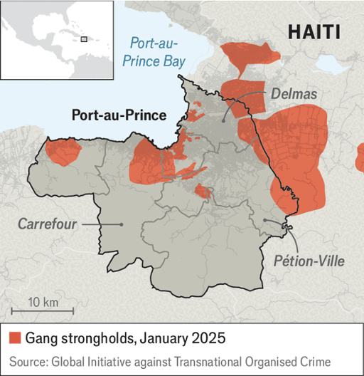 Despite limited improvements, most of the capital’s population of about 2.9m still lives in areas dominated by gangs. The airport, closed in November 2024 because of violence, has reopened only for domestic flights, and many roads remain controlled by armed groups demanding tolls. State finances are extremely weak, with government revenue falling to about 5% of GDP, compared with a Caribbean regional average of roughly 20%. Around three fifths of government spending goes to salaries, leaving little funding for services or investment.