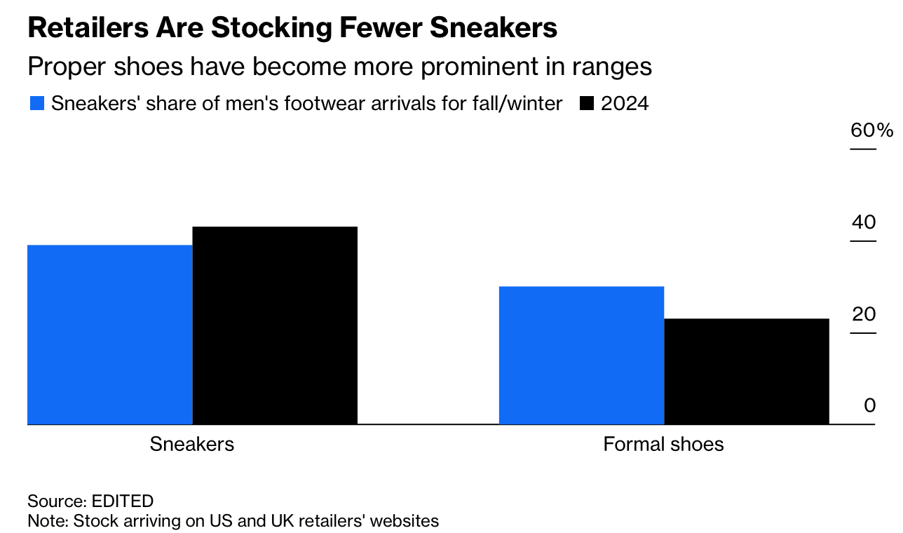 Behavioral and macro factors reinforce the shift. As office attendance rises and labor markets weaken, workers face stronger incentives to appear more polished. Social-media data show a spike in blazer mentions, and analysts expect sustained demand for boat shoes and lace-up brogues. While seasonality may influence near-term figures, consistent signals from share shifts, price increases and apparel sales suggest the market has passed peak casual and is reverting toward a more dressed-up equilibrium.