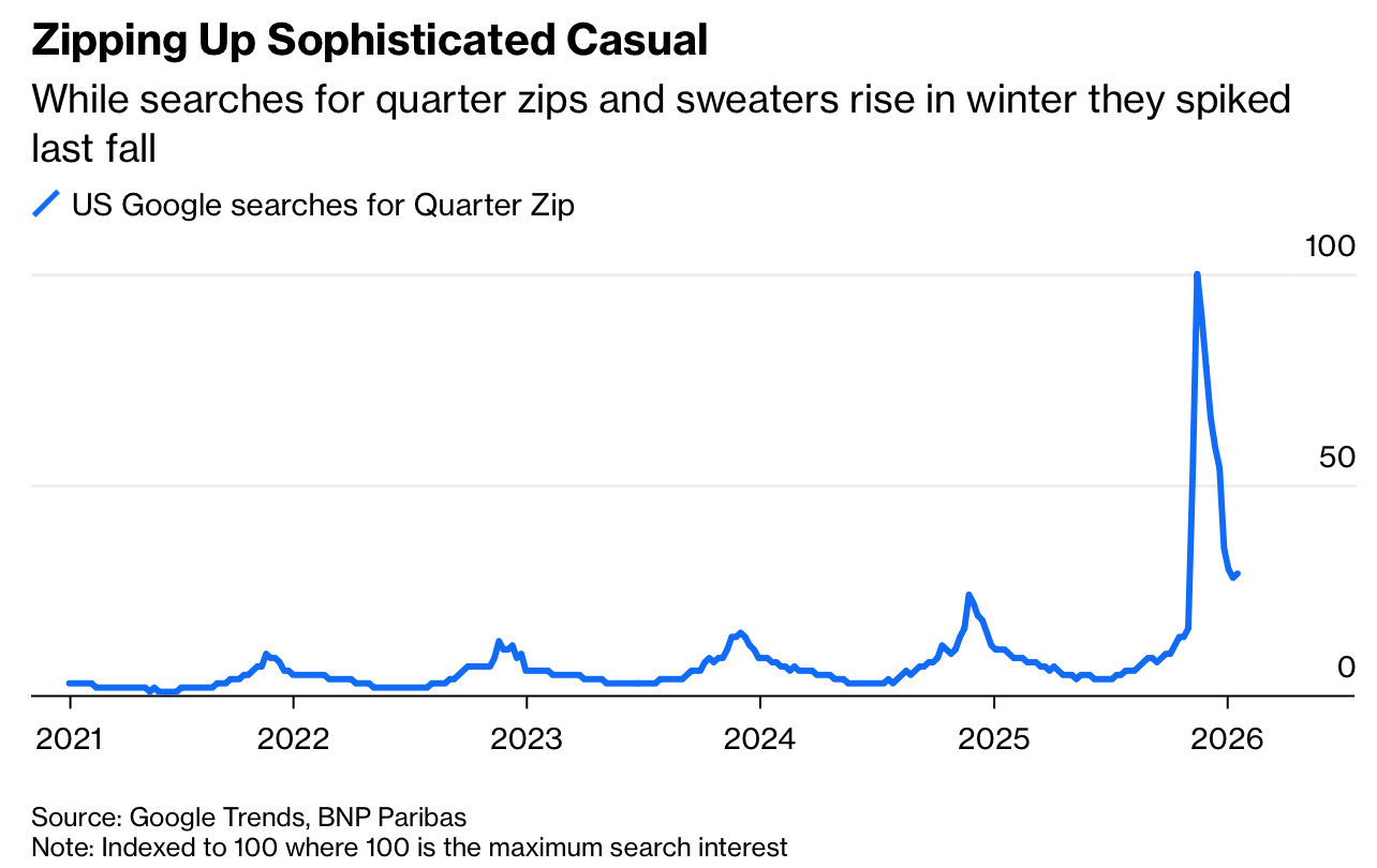 Athletic categories have not collapsed, but growth has become more selective. US sneaker sales still rose 4% year on year from January to November 2025, driven mainly by performance items such as running shoes, while everyday athleisure lagged. Even fashion sneakers are shifting toward smarter aesthetics, with hybrid designs borrowing from formal footwear. Small changes in category mix thus reflect a broader structural reallocation of demand away from casual dominance toward situational dressing.