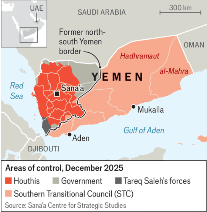 Late-December escalation followed a tight timeline: on December 26 a Saudi jet struck near an STC-held camp in Hadhramaut with no deaths, and on December 30 Saudi Arabia bombed Mukalla after alleging an arms delivery to the STC on two ships from the UAE, as the UAE the same day said it would withdraw its troops from Yemen. Whether the outcome is greater autonomy, partial STC pullbacks, or a political deal leveraging the 2020 Abraham accords, the trajectory reinforces a decade-long trend that Yemen’s future is largely set by foreign backers rather than Yemenis.