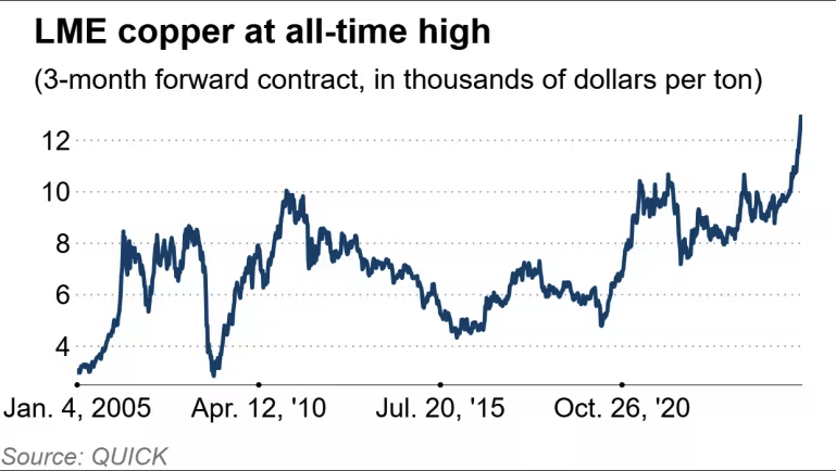 Copper hit an all-time high despite China’s slowdown, with the rally framed as tariff hedging plus AI-driven demand expectations. Prices rose about 40% over the past year, and London’s three-month benchmark hovered around $13,000 per metric ton after setting a record earlier this month. China still accounts for roughly 50% of global copper consumption, yet its October–December GDP grew 4.5% and slowed from the prior quarter amid a prolonged property downturn, implying sentiment and forward-looking bets are doing much of the work.