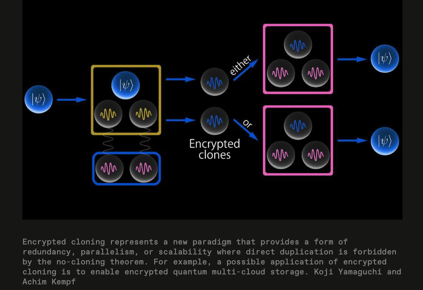 The report describes an “encrypted cloning” protocol that sidesteps the practical obstacle posed by the quantum no-cloning theorem: unknown quantum states cannot be copied without measurement, and measurement collapses superposition. The key numerical constraint is a one-time key: the method can create an “unlimited” number of encrypted copies, but the key works only once, so at most one copy can ever be decrypted and observed as a clear state, preserving the rule that there can be only one readable instance. The work is by Achim Kempf (University of Waterloo) and Koji Yamaguchi (Kyushu University), published in Physical Review Letters, and is explicitly compared to a classical one-time pad.