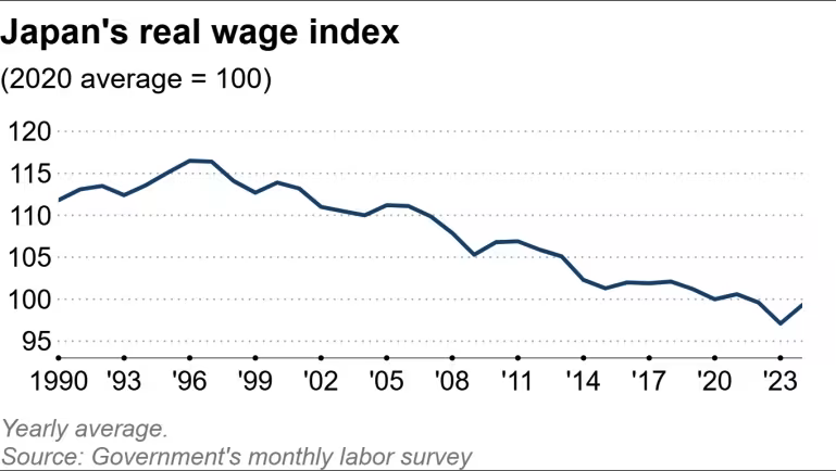 Japan exited decades-long deflation only to see real wages fall, with October real wages down 0.7% year-on-year and CPI (excluding imputed rent) at 3.4%, marking the 10th straight negative month. SMEs represent 99.7% of firms and employ over 33 million people (about 70% of the workforce), yet wage growth lags behind large companies. Prime Minister Sanae Takaichi launched a ¥21.3 trillion ($135 billion) stimulus and identified SME wage hikes as a core pillar, committing ¥1 trillion in SME support and emphasizing productivity gains over setting a national minimum-wage target.