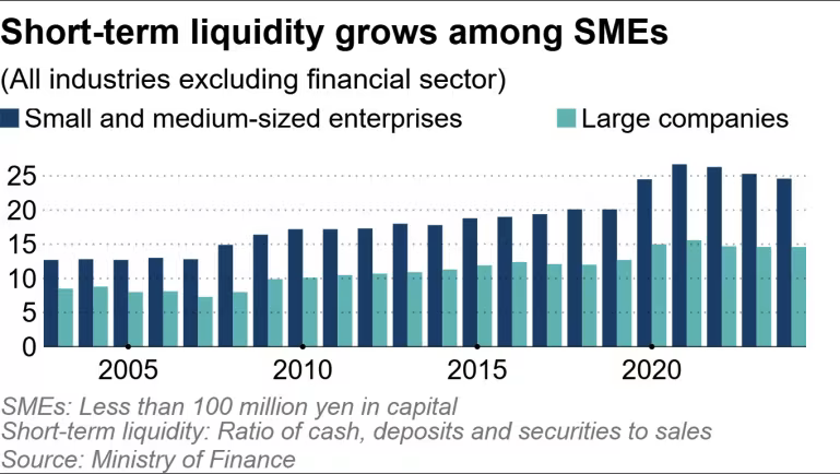 结构上,日本企业自 1990 年代后期以来长期维持「储蓄盈余」,抑制国内投资与人力成本,SME 尤甚。风险偏好不足导致中小企业囤积现金、难以扩大投资。个案如 Sun Automobile 透过自有品牌产品重建竞争力,而汽车供应链在中国竞争与电动化冲击下正经历产业转型。整体而言,日本需提升 SME 生产力、改善价格转嫁能力与投资积极性,以在通膨环境中恢复实质薪资与增长。