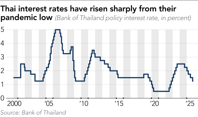 Drivers and stress indicators cluster around rates, debt, and mortgage rejections. The Bank of Thailand raised its benchmark rate from 0.5% to 2.5% in a year, lifting mortgage costs and cooling demand; household debt stood at 88.2% of GDP at end-Q1 2025, Asia’s second highest. A Housing Business Association survey (Sept–Oct) covering 200 projects found ~40% mortgage rejection, nearly double in some cases, especially for homes under 3 million baht ($95,875); cited reasons were high debt burden (37.3%), unstable income (33.3%), and weak financial records (21.6%). The Thai exchange’s property/construction sub-index is down 42.6% from a January 2023 high despite a 15% rally since June. Offices saw 97,108 sq m net take-up in the first three quarters of 2025, but 74,000 sq m new supply pushed occupancy to 79%. Industrial/logistics look brighter: Omega 1 Bang Na is due to open in Q2 2026 with 217,000 sq m.