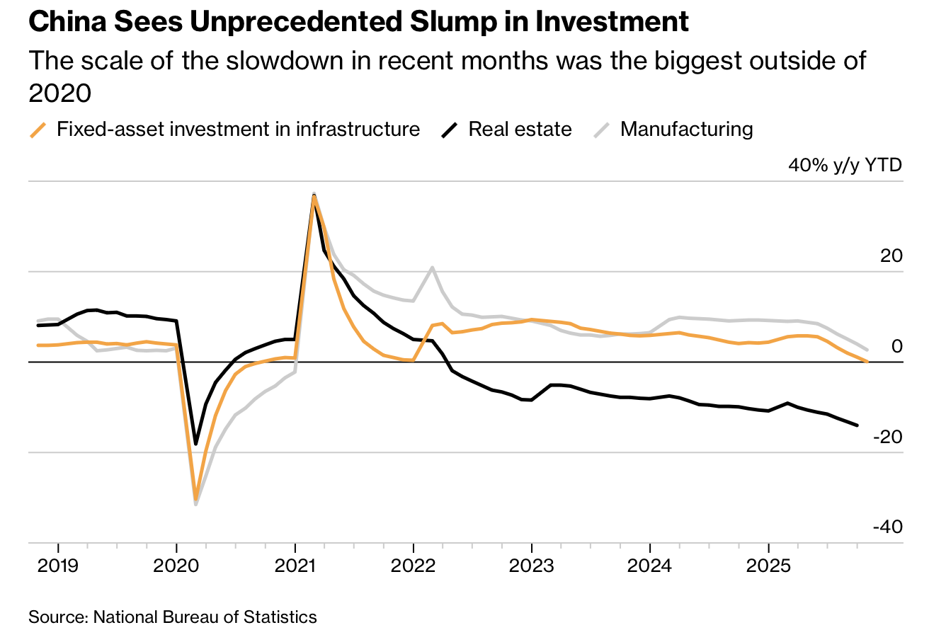 在第四季度项目清算与利息支付集中到期之际,这些平台被迫以更高利率再融资以避免违约。官方的债务置换计划规模达 10 万亿元人民币,本旨在把隐性债务转回地方资产负债表,但当前影子借贷的回潮构成反向压力。中国信托行业自三年前停止披露行业数据,使影子银行规模追踪更加困难。融资渠道收紧导致基础设施投资大幅下滑,尽管部分地区经济实力较强,但财政纪律使其不得不接受高成本融资。