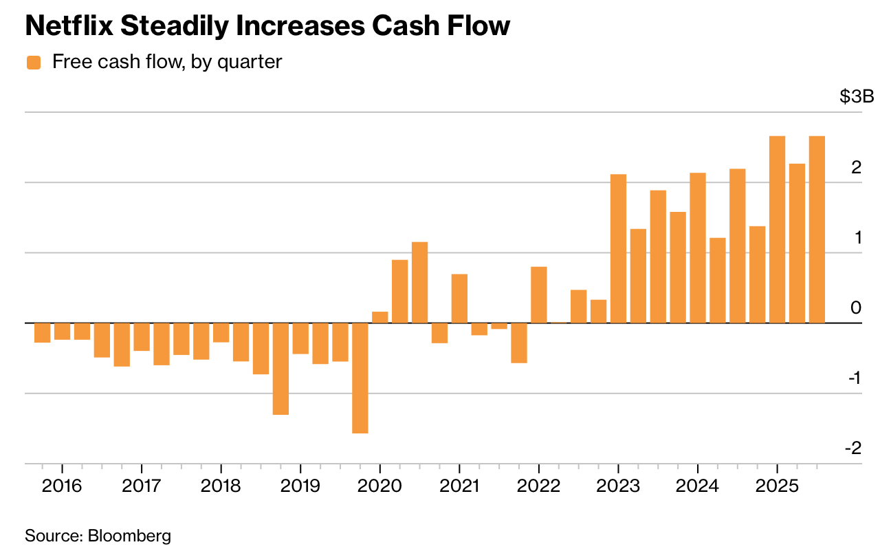 If the acquisition closes on current terms, Netflix’s total debt is projected to jump to about $75 billion, while next year’s earnings before interest, taxes, depreciation and amortization are estimated at $20.4 billion, implying net debt of roughly 3.7 times Ebitda. By 2027, that leverage ratio is expected to fall to the mid-2x range as earnings grow. The company now generates more than $6.9 billion of free cash flow annually, a sharp improvement from its pre-pandemic debt peak of $18.5 billion that earned it the nickname 'Debtflix'.