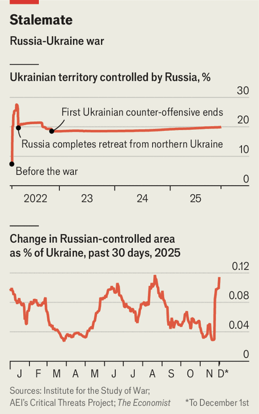 Over a fortnight of diplomacy culminated on December 2nd with Vladimir Putin keeping Donald Trump’s envoys waiting two and a half hours in Moscow before five hours of largely detail-free talks, signalling no real movement toward peace. These meetings followed a November 30th session in Miami that produced a revised 20-point framework, itself a rework of an earlier European-backed plan, while Kremlin advisers in Moscow muddied matters further by speaking of four separate papers.