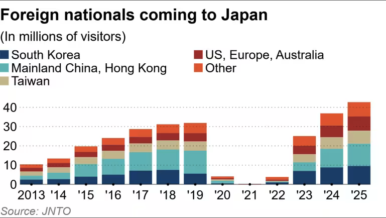 政策目标与现实之间仍存差距。政府计划2030年接待6000万名国际游客、实现15万亿日元消费,并将人均消费提高至25万日元。去年第四季度人均消费为23.4万日元,低于2024年同期的23.6万日元;平均停留天数也从8.7天下降至8.3天。尽管人均消费较疫情前提高,但近期增长停滞。要实现目标,行业需通过提高房价覆盖更高工资与投资,并引导游客延长停留、分散至全国各地。