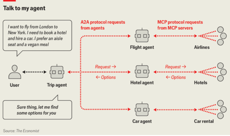 为了让代理跨服务运行,标准正在出现:Anthropic的模型上下文协议(MCP)用于查询和使用API,以及谷歌的A2A协议用于代理对代理的协作。12月9日,Anthropic、OpenAI、谷歌、微软等宣布了Agentic AI Foundation,而微软的NLWeb和新的代理驱动浏览器扩展了基于聊天的访问,其中包括OpenAI在9月启用站内直接购买,以及既有公司在11月的反击。