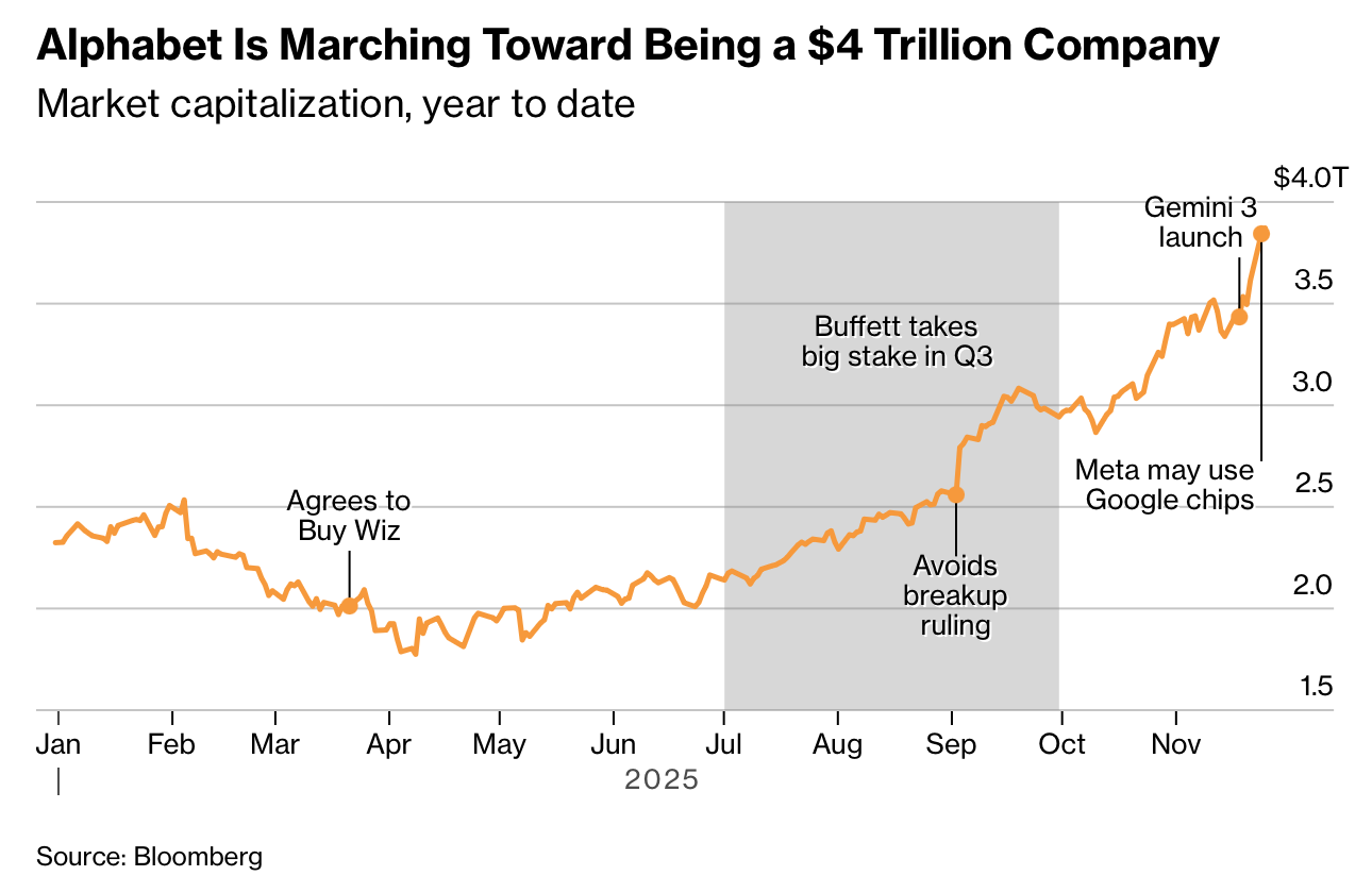 谷歌在 2024 年末至 2025 年间重获 AI 主导权,核心指标呈现强劲反转:Alphabet 股价自 10 月中旬以来推动市值增加近 1 万亿美元,并在本周上涨 1.5% 至 323.44 美元,使公司市值逼近 4 万亿美元。Gemini 3 Pro 登顶 LMArena 与 Humanity’s Last Exam 榜单,应用端累计用户 6.5 亿,但低于 ChatGPT 的每周 8 亿用户与月度 9,300 万下载(Gemini 为 7,300 万)。此外,谷歌云第三季度收入达 152 亿美元,同比增长 34%,仍低于竞争对手但处于加速阶段。公司 AI 芯片 TPU 需求攀升,Anthropic 计划使用多达 100 万颗 TPU,交易规模达数百亿美元;Meta 也在谈判中,市场视为谷歌技术成熟的信号。